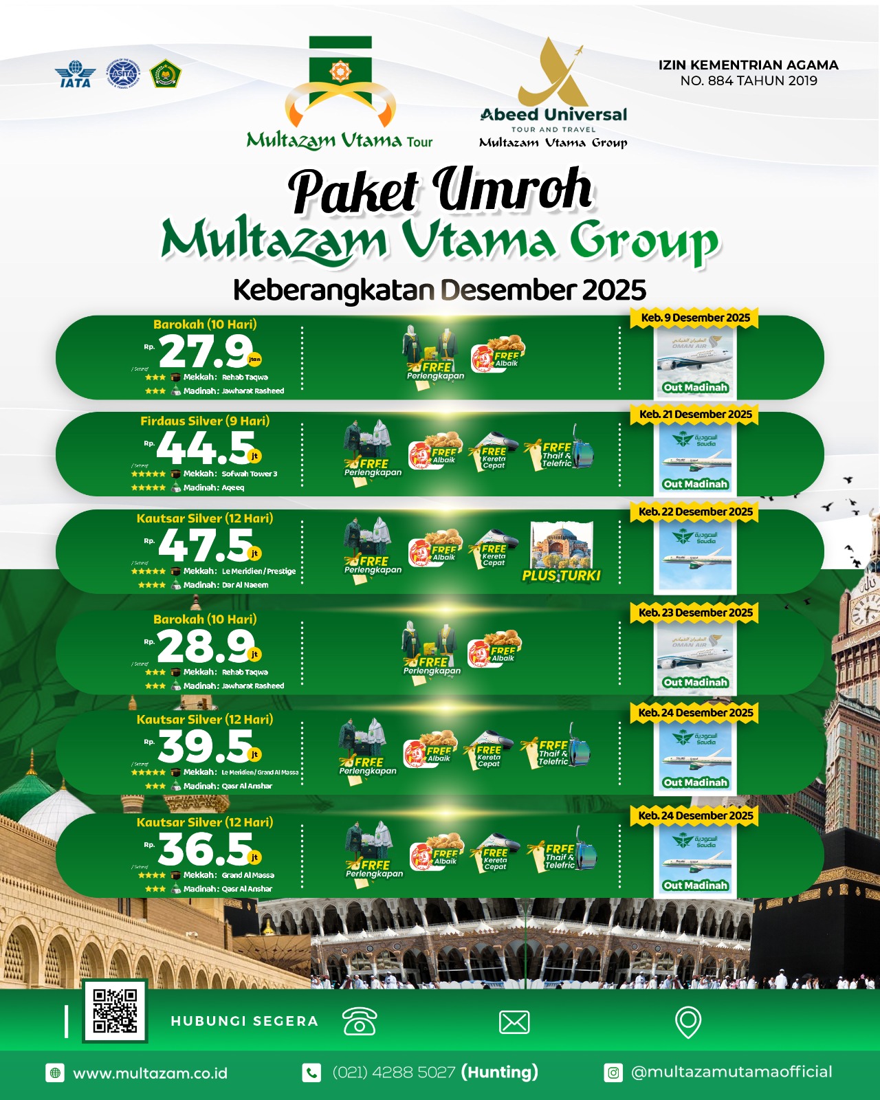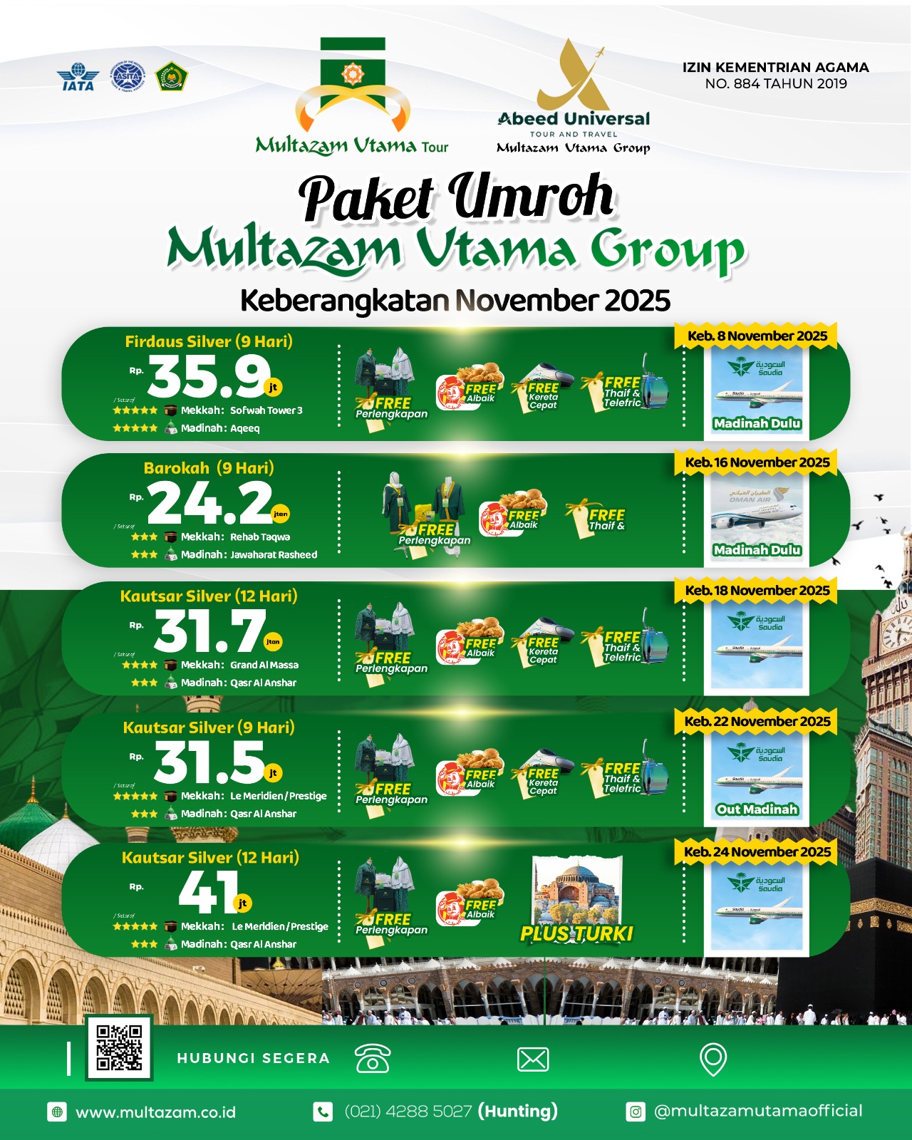 Nikmati pilihan paket Haji & Umroh yang dirancang untuk kenyamanan Anda. Dengan bimbingan ustadz berpengalaman, fasilitas lengkap, dan akomodasi strategis—kami hadir untuk memastikan perjalanan spiritual Anda lebih tenang dan penuh makna.